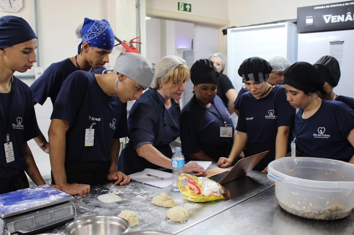 Para isso, a Fundação realizou uma parceria com dois chefs voluntários: a empresária Ana Zita Klein Fernandes, da Barbarella Bakery, e Leandro Harter, da Levain Padaria Artesanal. A dupla se envolveu e motivou os aprendizes no preparo da versão natalina, que coparticiparam na elaboração de receitas junto com os educadores, numa versão autoral e saborosa. Serão produzidas cerca de 200 unidades de pães – 50 por semana - até o Natal. A equipe da cozinha da Fundação também participa ativamente na preparação da nova receita. Os pães natalinos serão doados de forma simbólica a representes da comunidade. Empresas que porventura tenham interesse em saber mais informações sobre o pão natalino podem entrar em contato pelo e-mail da Captação de Recursos do Pão dos Pobres, com Lisiane, pelo e-mail lbotelho@paodospobres.com.br.